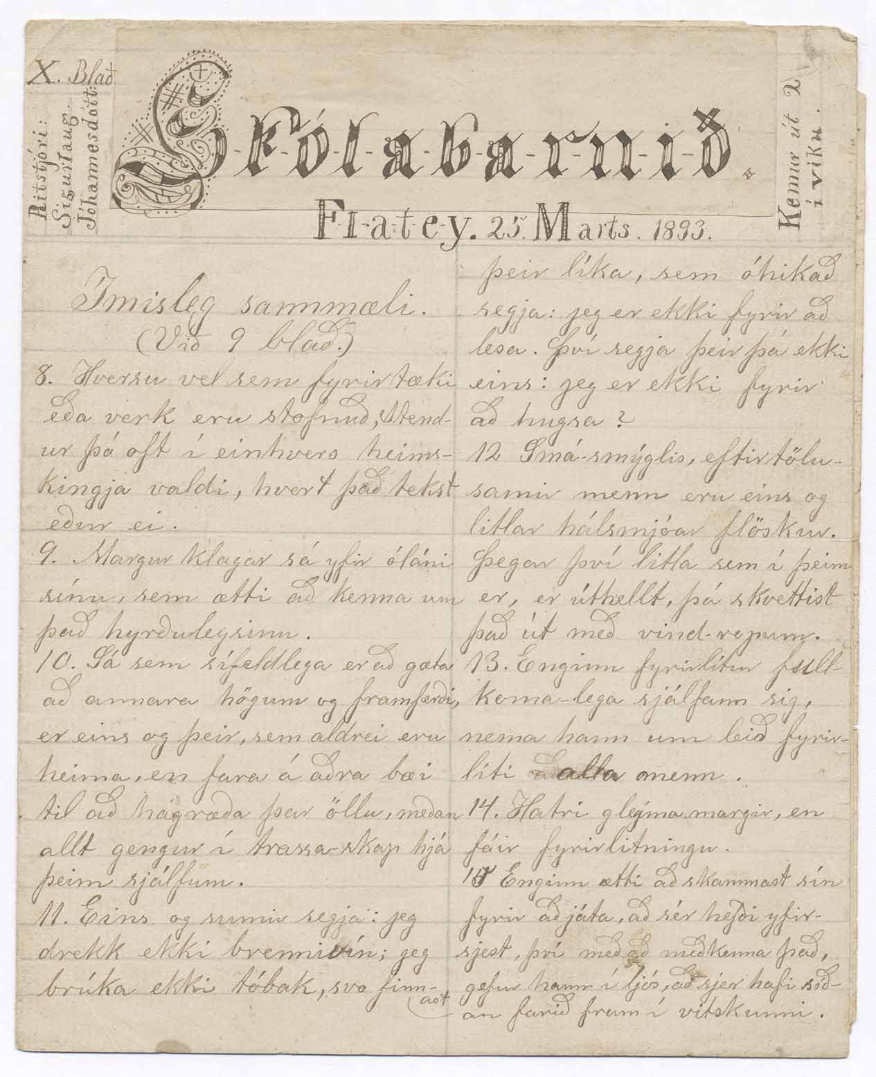HérÞing. E-166/4-10 Sveitarblöð. Skólabarnið 10. tbl. 1. árg. 1893